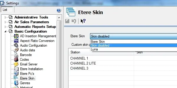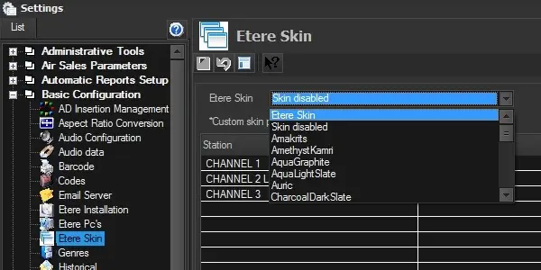 Description: Select the global skin with which Etere modules will be displayed. The most common skins include: