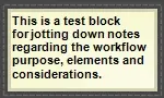 Description: This action consists of a "floating block" (i.e. intended not to be connected to any other block); this block allows the insertion of a brief text to, for example, facilitate the understanding of the T-workflow, jot down useful notes, etc.