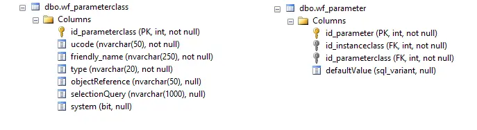 Two tables have been added, namely the registry parameters (wf_parameterclass) and the relationship between parameters and T-workflow (wf_parameter):