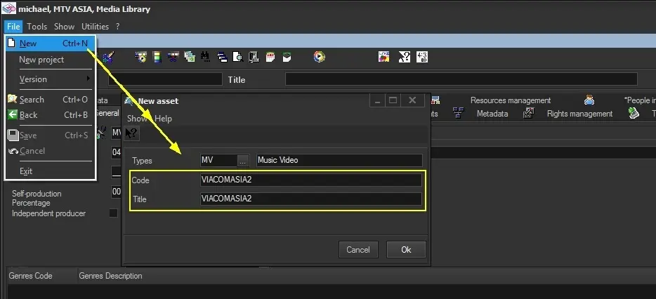 2. Still in the Media Library, create a new asset (CTRL+N) and copy all metadata from the old asset to the new one: