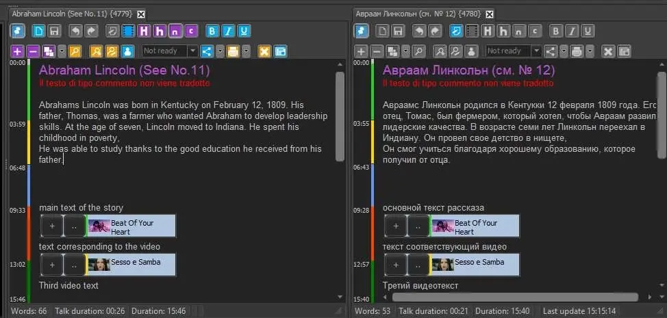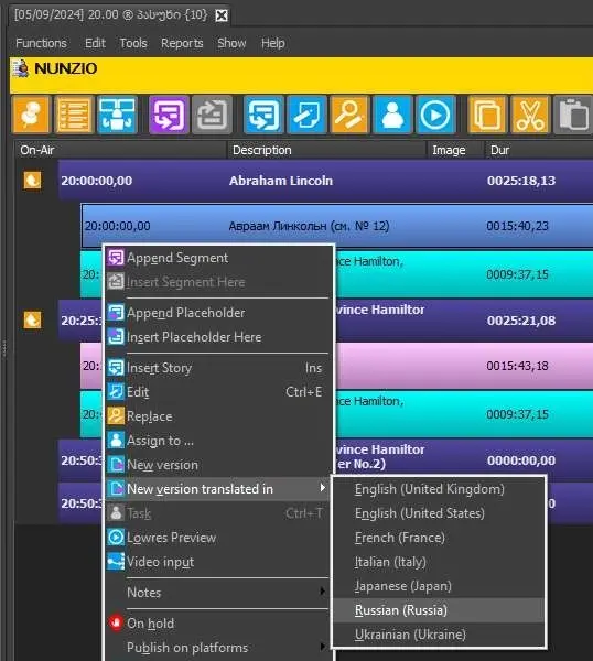 In Nunzio rundowns depending on necessities, you can translate single paragraphs inside a story or create a new translated version of the entire story. Selecting the single paragraphs there are no limitations for the translation, but creating a new translated version the comments (paragraphs in red) won't be translated