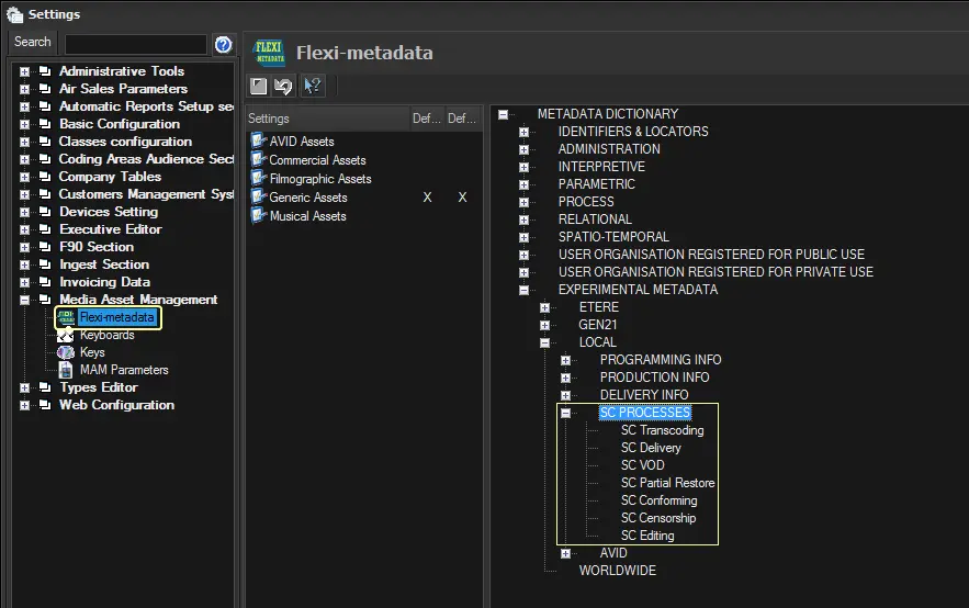 In "Etere Configuration > Settings > Media Asset Management > Flexi-metadata", under the "Experimental Metadata > Local" node, create a new node (e.g. SC Processes) and add all processes to be used in the Shopping Cart (e.g. SC Transcoding, SC Delibery, SC VOD, etc.) to the node.