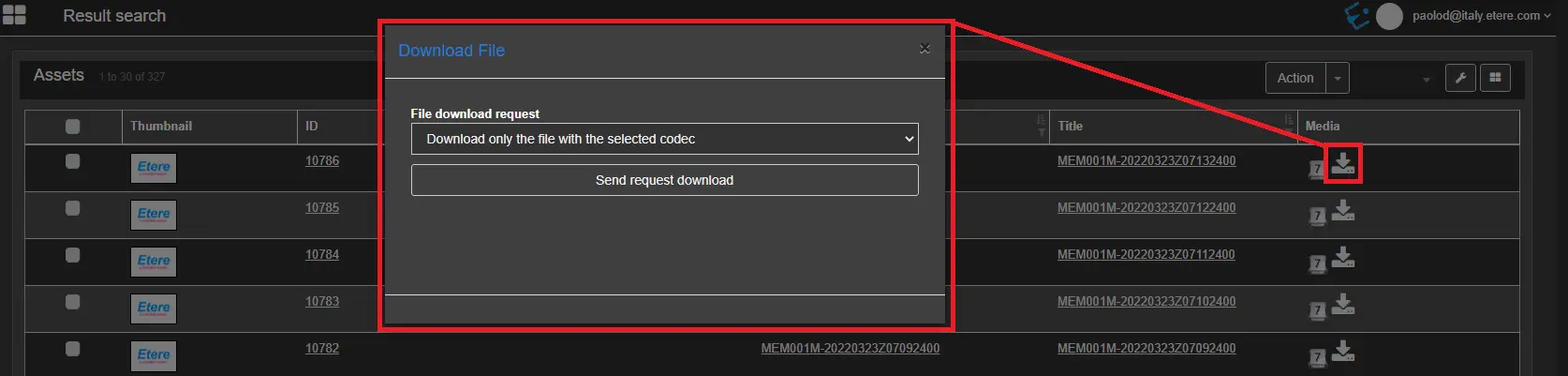7. In case the request is accepted, the web user will be now allowed to download the requested file(s) through EtereWeb: