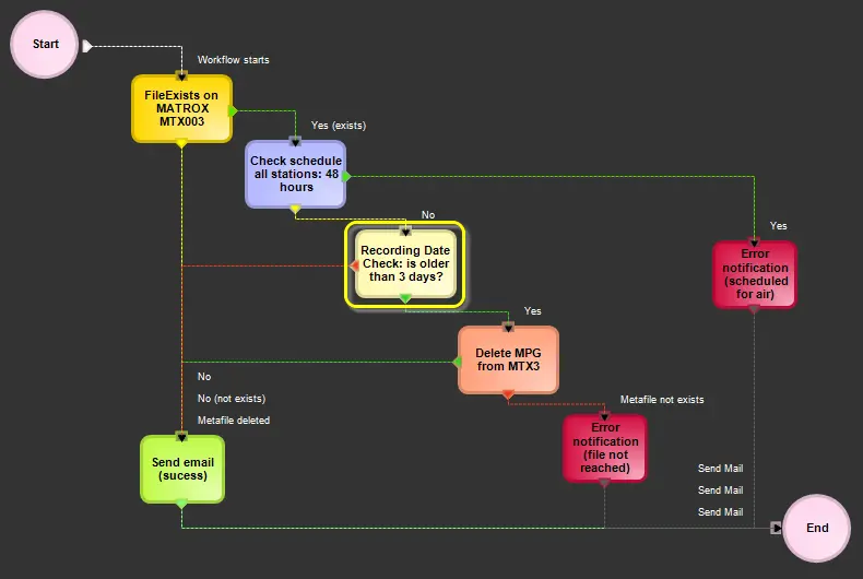 The Recording Date Check action allows querying the database to know if an asset is older than "n" days, that is if its media has been ingested more than "n" days ago.
