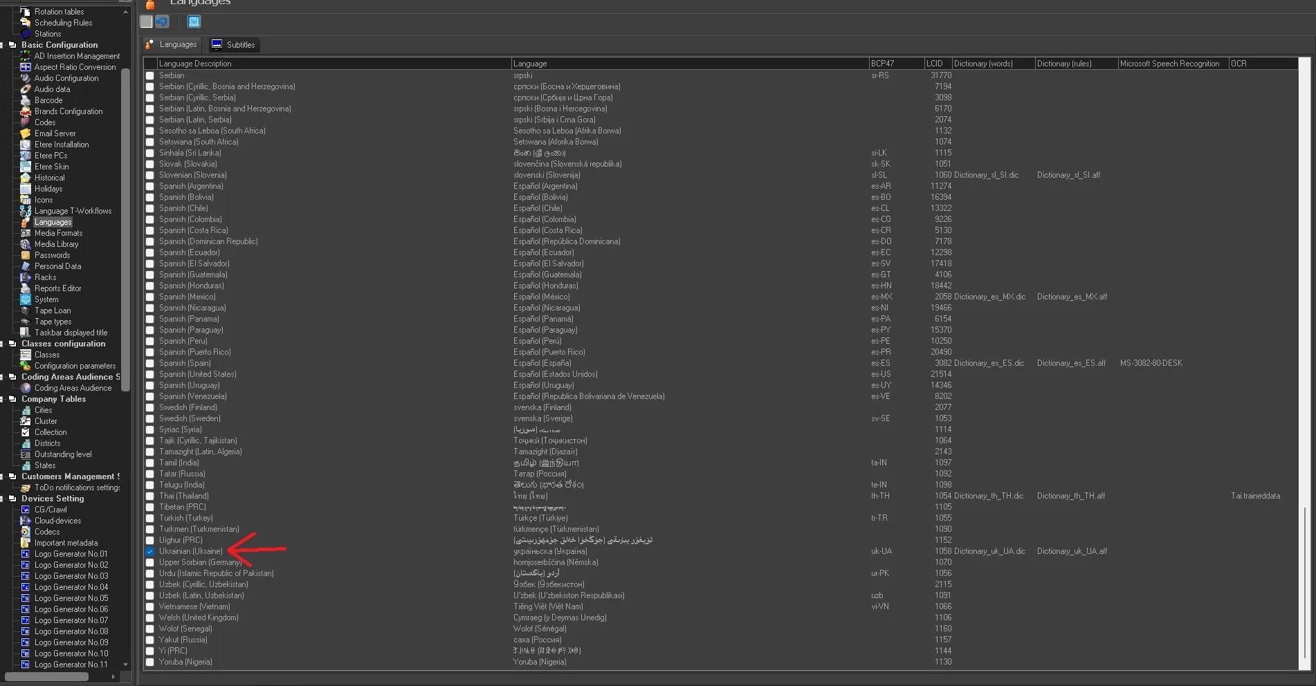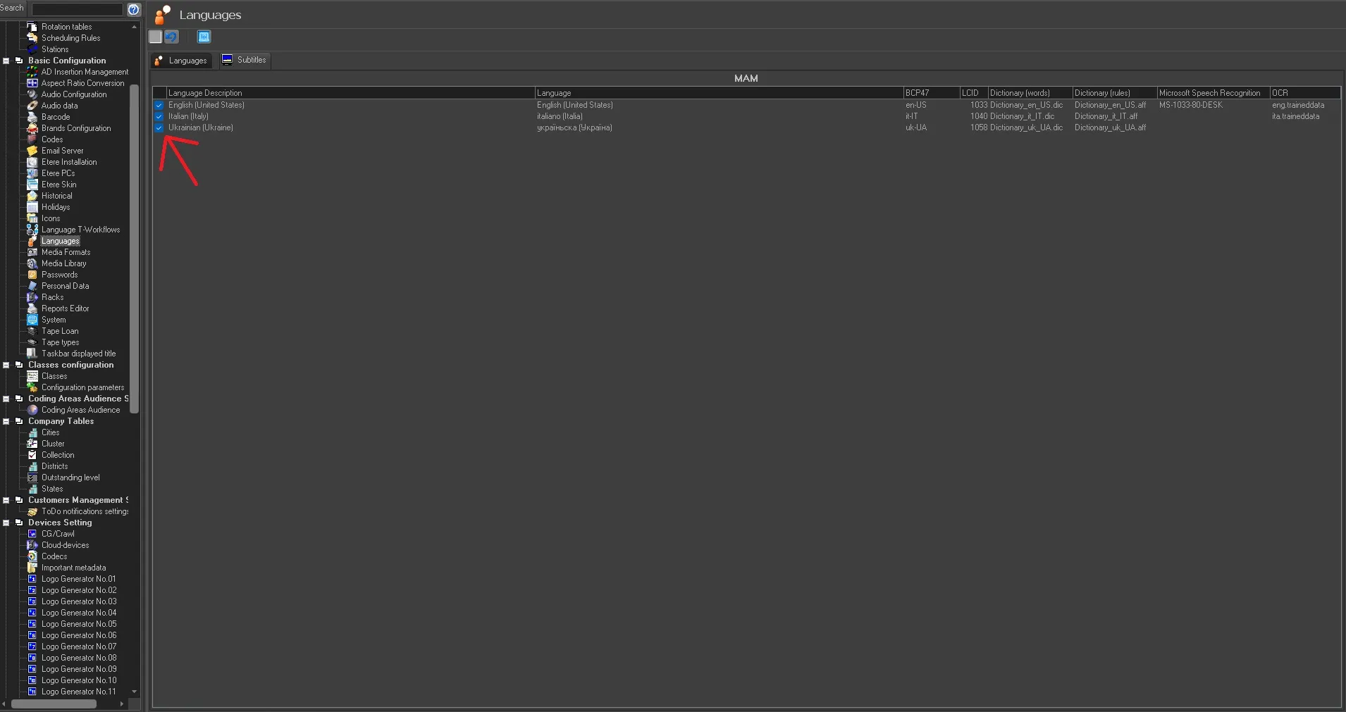 "Configuration > Settings > Basic Configuaration > Languages" and also in the second tab Subtitles