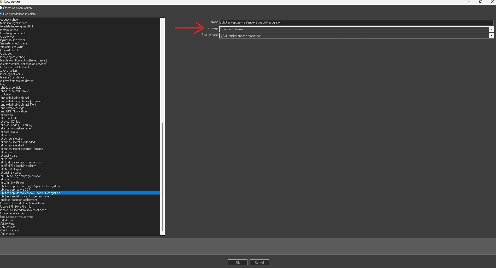 This action allows you to read the source file to export the text and create subtitles with the set language.