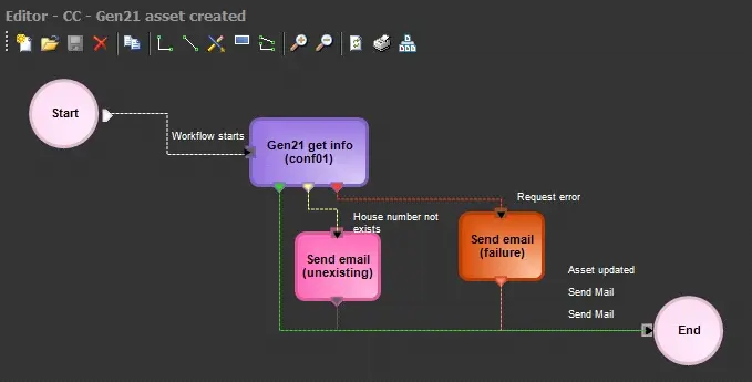 Once created to be used, this action is required to be included in a T-workflow (e.g. for updating just created assets with information retrieved from integrated Gen21 systems) under the T-Workflow designer and then attached and launched for the desired asset(s):