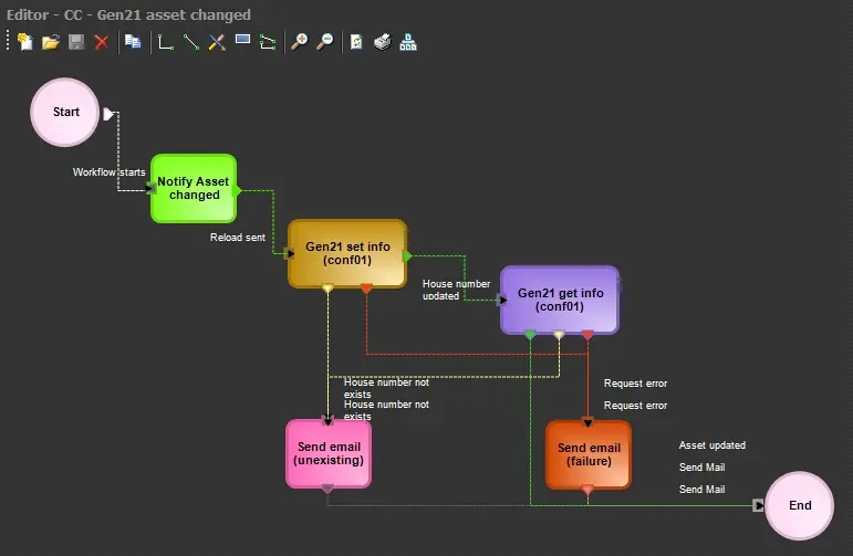 Once created to be used, this action is required to be included in a T-workflow (e.g. for sending Gen21 systems up-to-date information on just modified assets) under the T-Workflow designer and then attached and launched for the desired asset(s):
