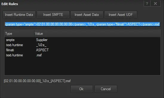 Editing box: - <param type="smpte">02.01.00.00.00.00.00.00</param>_%0:s_<param type="filmati">COD_PROGRA</param>.mxf
