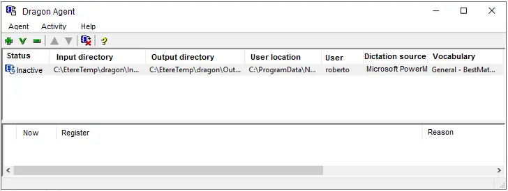 When the Dragon Agent application is activated, the configured settings are present.