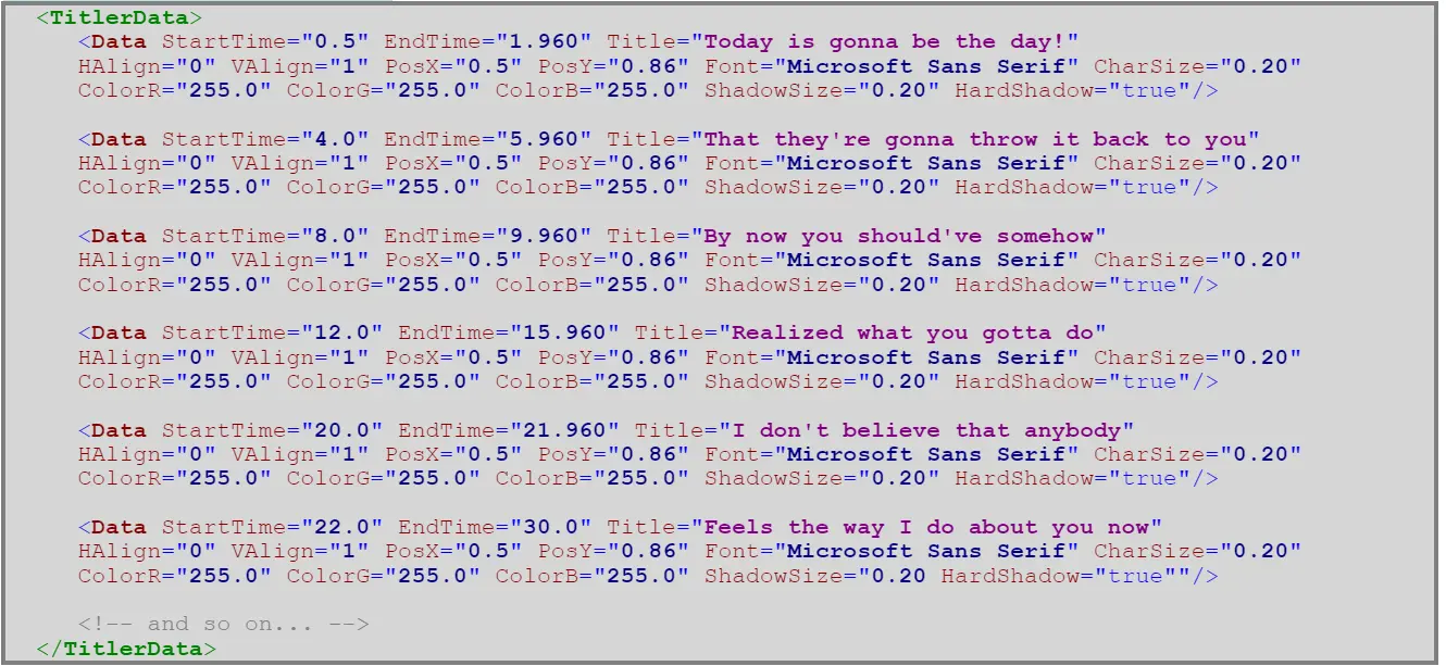 In case of using a custom destination, subtitles can be manually inserted in the main XML by replacing the Filename parameters with the correct subtitle data: