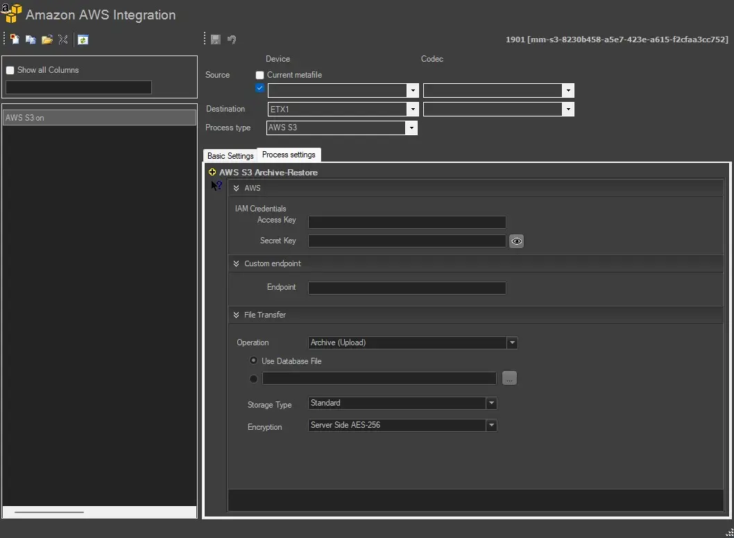 Operation - Select one of the available operations, e.g. Archive (Upload), Retrieve (Download), or Delete.