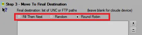 If Destination Paths have been explicitly configured, cloud path destination paths are ignored. Otherwise, if no path is configured, Data Mover loads the list of all associated paths with the selected cloud device and chooses the destination according to the specified policy.