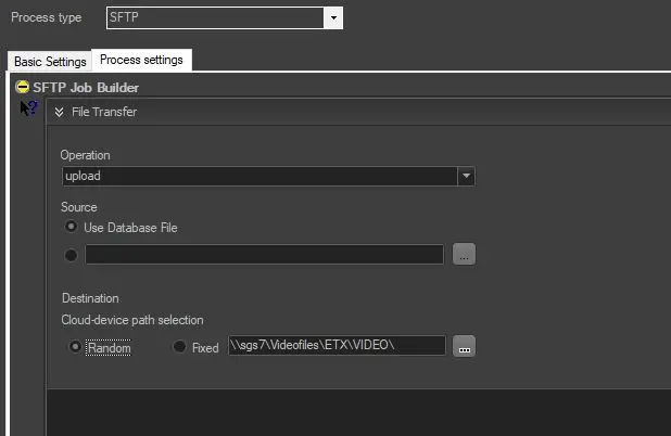 Process type - Select SFTP as the process type for file transfer.