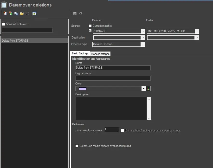 • Run each task using a separate agent process: Etere Data Mover will launch each instance of the current action in a separate Etere Data Mover agent, thus avoiding possible concurrency issues. Etere suggests allowing this parameter in case of high concurrency.