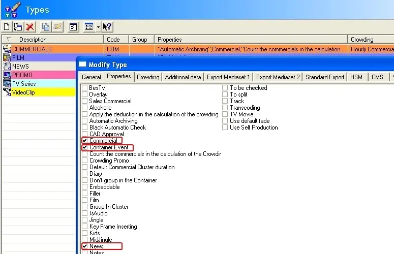 The very first step on preparing the creation of an Events Log Report consist in enabling the asset types that will be included in the report, this, by assigning specific "ministerial types" under the Etere Configuration > Settings > Types > General section: