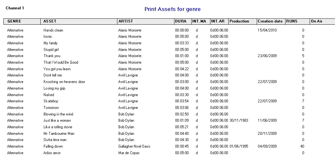 This report allows the printing of a report of assets sorted by genre. If the "Number for genre" option is checked, the report generated will include the list of genres available in Etere and the number of assets associated.