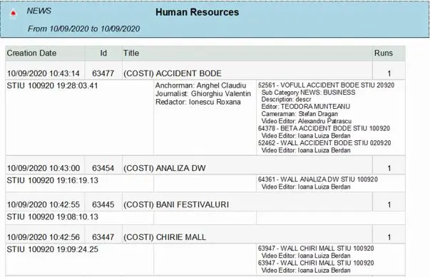 •Name of Rundowns where the story is present