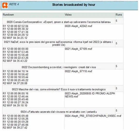 This report captures the stories broadcasted from hour to hour and identifies the number of stories repeated from one Rundown to another.