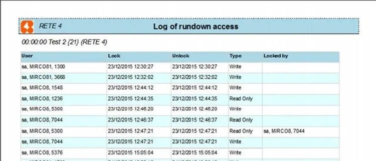In the Rundown node, you can use the Log of rundown access sub-node to generate a report with the same name to determine and manage the rundown locking status.
