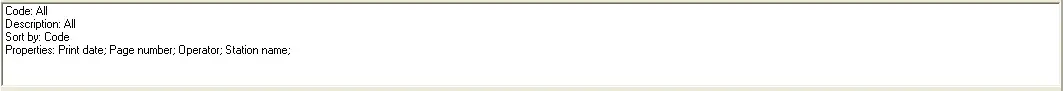 Specify here the field on which the printed content will be ordered. Possible sorting criteria include code and description,