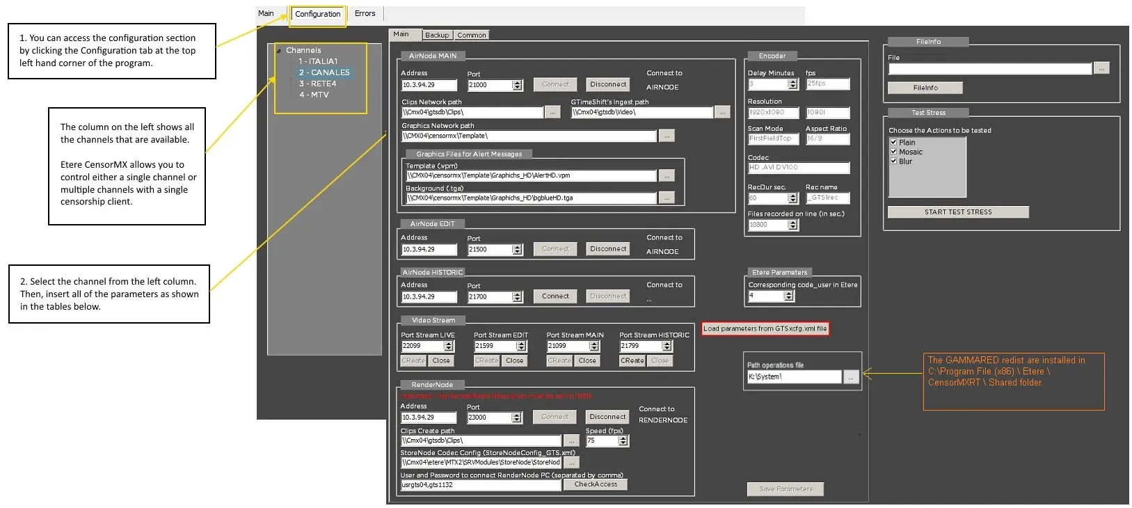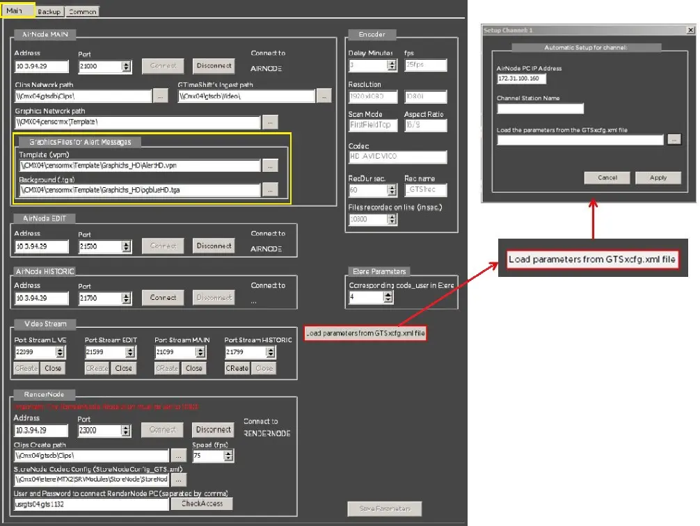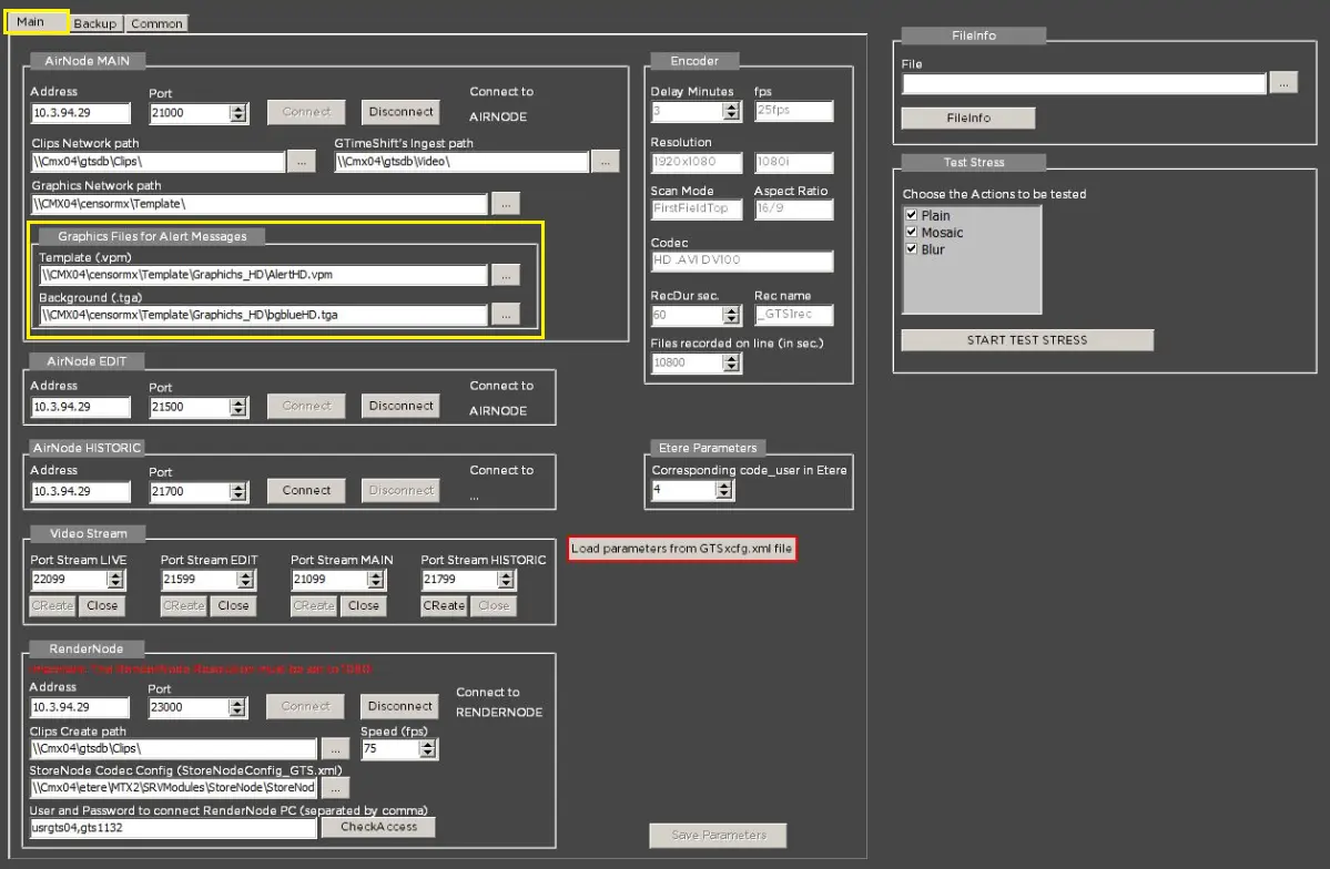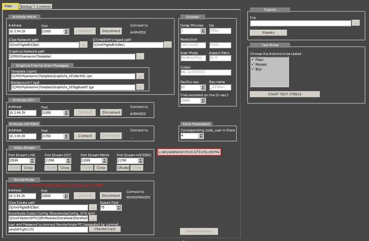 NB: In the workstation where CensorMX is installed, the Main and Backup configuration is displayed and editable only if the registry key "ViewConfigurationBackup" is set to "1" in Windows Registry [HKey_Current_User\Software\Etere\Etere.CensorMx].