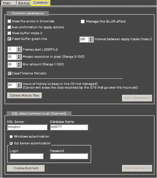 All the parameters are required to set up CensorMX on your PC. If you do not need the Backup CensorMX configured on your PC, no action is required for the Backup tab. Upon completion, click the <Save Parameters> button to save the configuration.