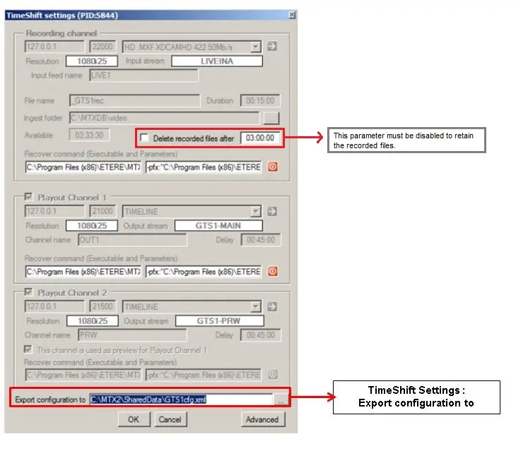 •GTimeShift's Ingest path: Specify the path in GTimeShift to access the XML file.