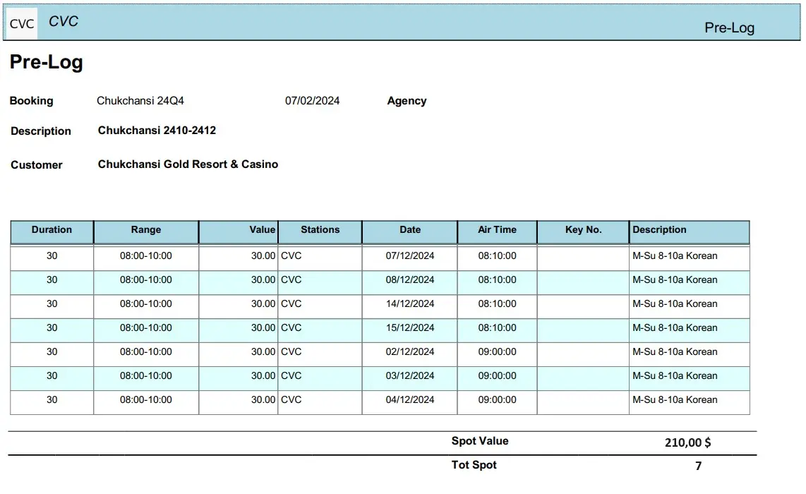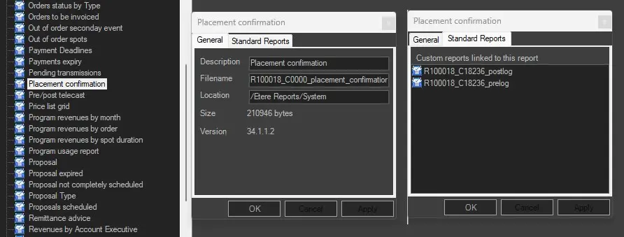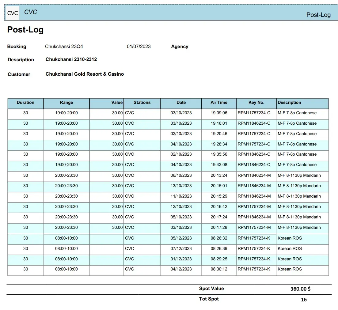 NB: this is a customized REPORT, if you need it in your system you must write to marketing@etere.com to have it enabled.