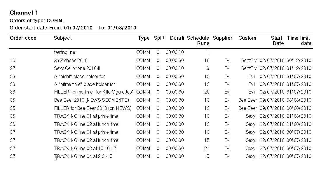 The Orders by Type report allows you to generate a document containing all current orders in a specific time frame of a particular type specified by you or all types.
