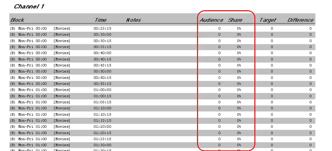 Share - Actual audience share (e.g. 37 per cent). This field depends on imported audience data.