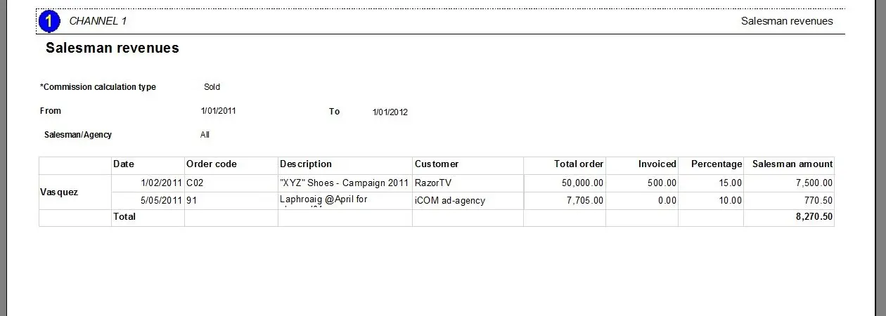 - Invoiced: Commissions will be computed only on the order's invoiced amount: invoiced = sold - not invoiced.