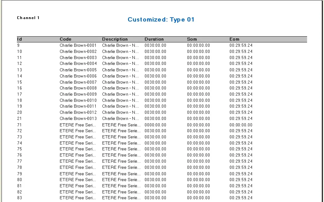 NB: These column headers are guided by the information on the video files (EOM, SOM, Proxy file, Bit rate, Asset ID, etc.).