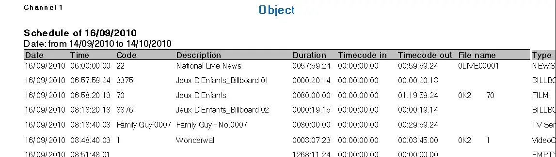 The Object report allows generating the schedule of certain date range, based mainly on the type of the events contained on it.