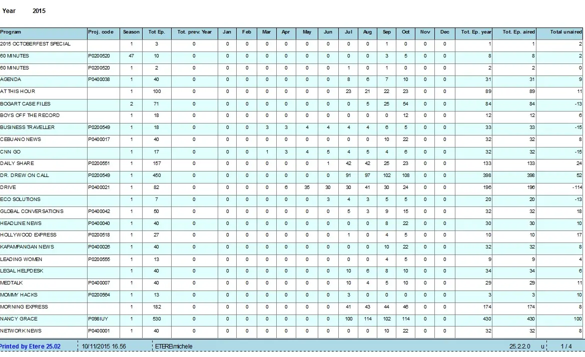 The Program Usage Report shows a monthly and yearly breakdown of program usage, including comparison with total aired, total unaired and previous year's total.