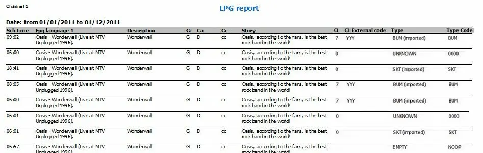 The EPG Report allows for generating a document containing the EPG information (Electronic Program Guide) of programs scheduled within a given period. EPG information is retrieved from the asset's EPG fields compiled under "Media Library > Metadata > EPG 1, 2".