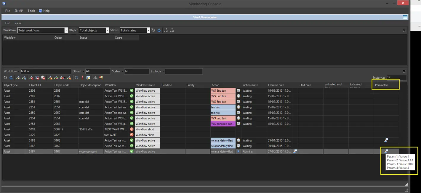 As shown in the figure, the Workflow Monitor allows, through a simple and intuitive interface, to view and control the total number of instances related to all T-workflows and the details of each single T-workflow instance.