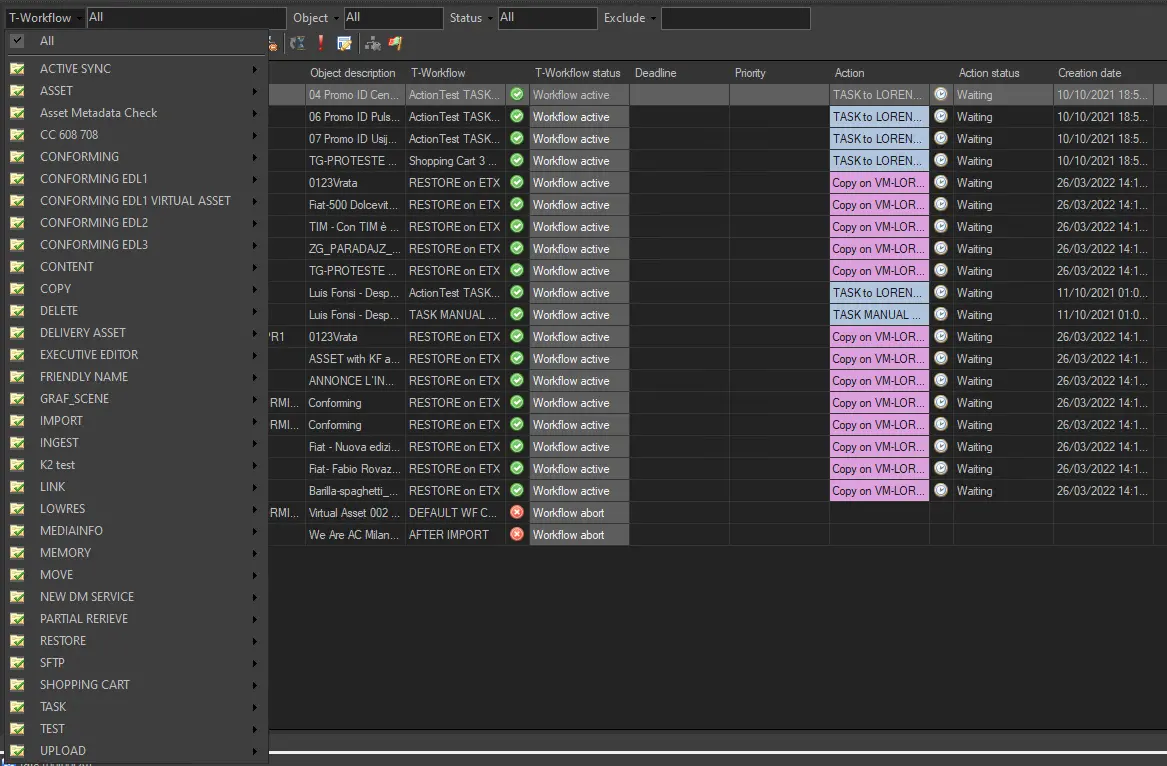 The Workflow Monitor is a handy tool that permits Supervisors to monitor all T-workflows executed on a certain station, allowing them also to manage their assets and related operations such as transfers, checks, requests and much more.