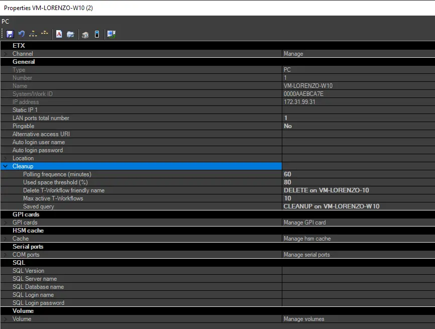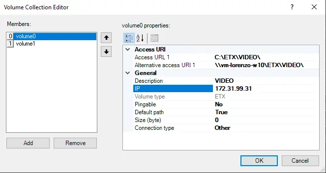 In the volume parameters, you can specify a local path in the URL address and trigger the "cleanup" when the used space threshold is reached. The paths for media operations are defined in the "Media Folder" settings in the Etere Configuration module.