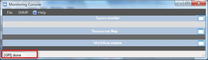 All Monitoring Consoles enabled for GPI alarms (in one or more filters) will be displayed in the monitoring status bar, detailing their status (idle, done) according to received SNMP messages: