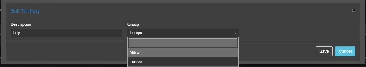 Note: The groups shown in the droplist must be first configured in Territory groups section.