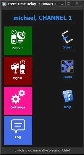 Once the Etere CensorMX Time Delay application is launched, its main menu is displayed, allowing the user to start using the software: