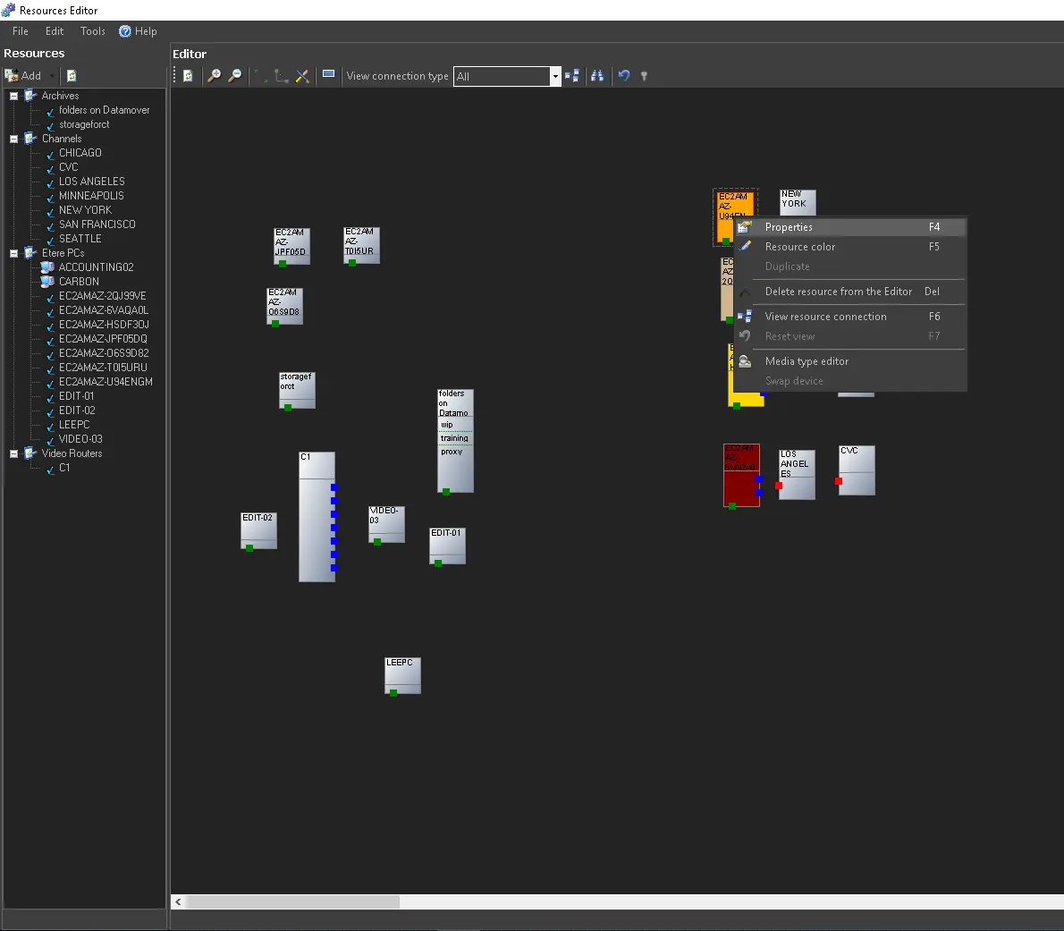 In order to configure any given Etere ETX resource, you must first login to the server where the resource is connected and open Etere Configuration > Resources Editor.