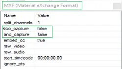 WARNING: In the format settings below, the "scc_capture" and "anc_capture" settings are set to False by default during Etere installation and updates. If MXF file format is specified for the ingest channel, the application would not auto-create output file with extensions ".scc" and ".anc" unless the settings are changed to "True". Moreover, to include non-live events in the VANC (On-air Assets) report, the "scc_capture" attribute must be set to "True".