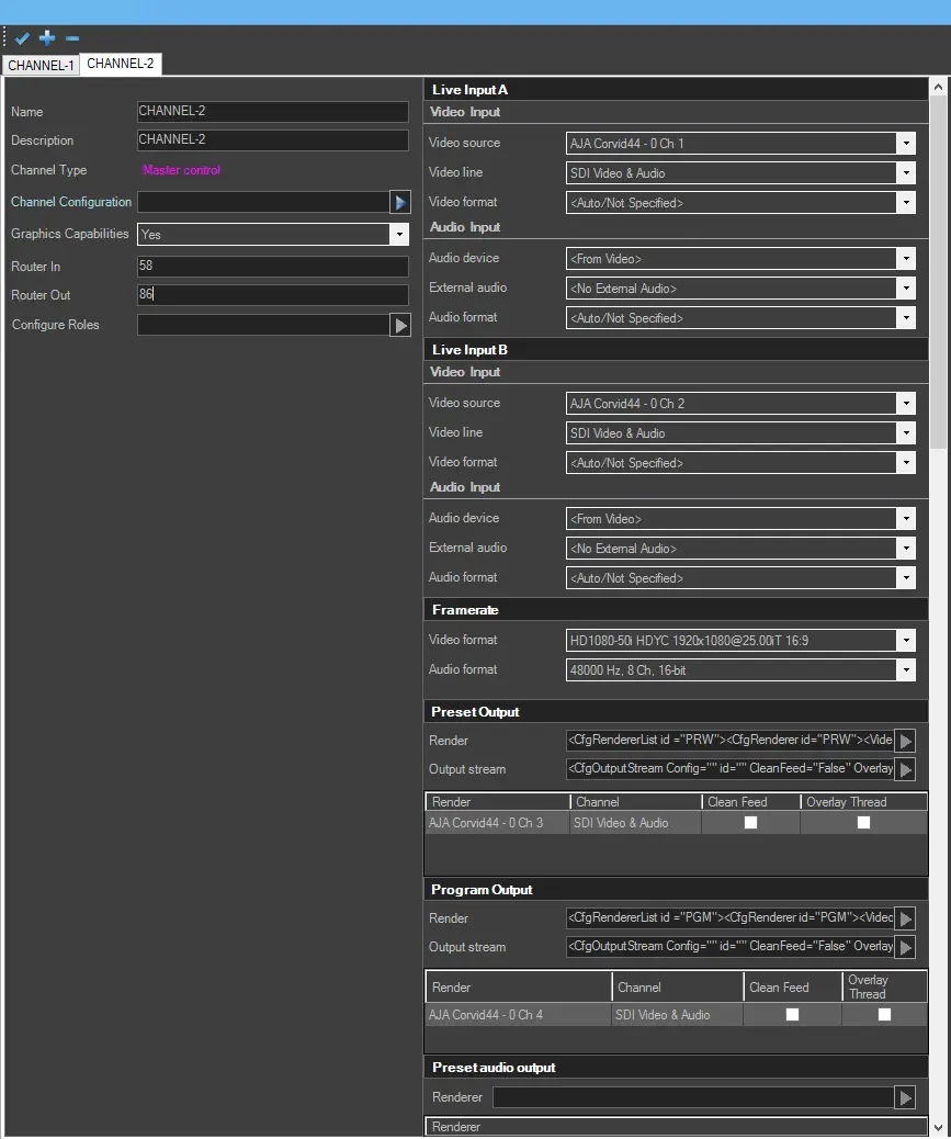 Note: In case of SDI renders, it's not possible to assign the same SDI output to both preset and program renderers.