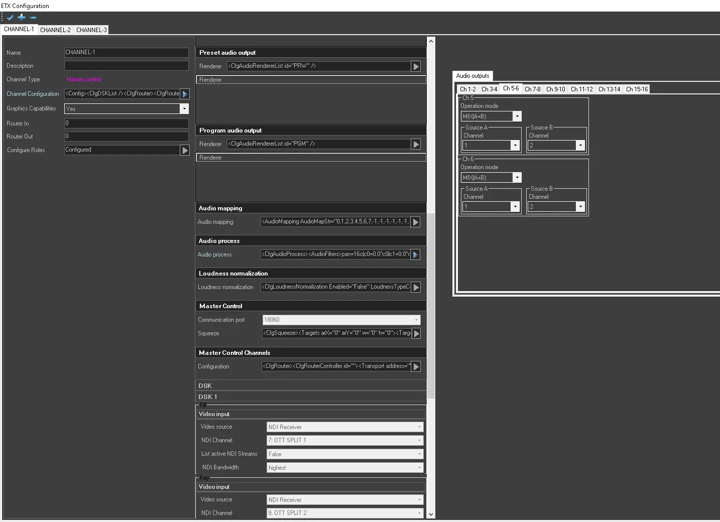 Audio Mapping: The Audio Mapping allows to define up to 16 audio channels.