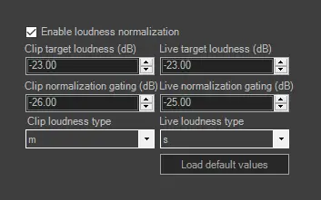 Live target loudness(dB): Set the loudness decibel scale for live clip.