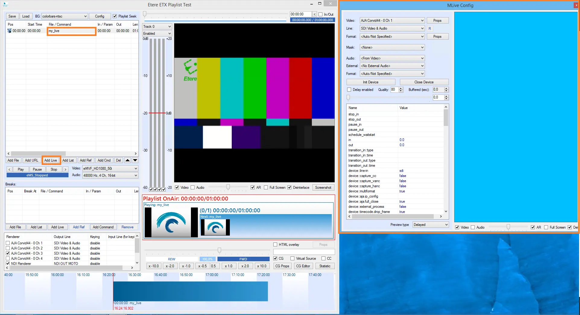just close the MLive Config form, and press the Play button on Etere ETX Toolbox Player