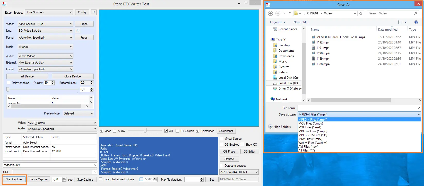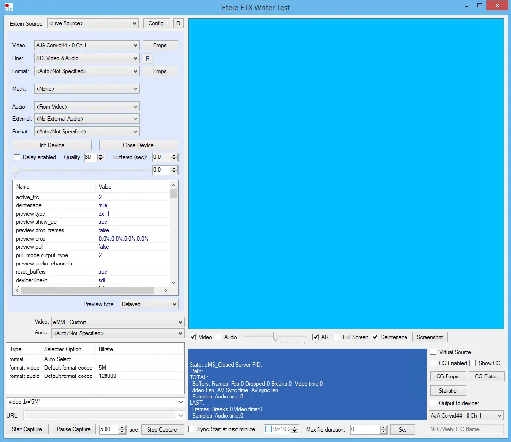 Etere ETX Toolbox Writer as debugging tool for recording and preview, you would need to change the Windows Registry key value “preview.type” in both