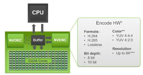 The hardware supported by NVENC encoding is indicated in the diagram below: Nvidia video encoding hw